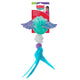 KONG Flingaroo Flight launches cats into healthy instinct satisfying fling and capture play. The large and lightweight pom ignites playtime with an ease of being able to toss the toy into the air and a satisfying grab and drag action. between the wings Shiny wings draw attention to the soft pom-pom designed for grabbing and flinging. The crackle sounds within the ball and irresistible fluttery feather action spark hunting instincts. A durable wax string links everything together and supports loads of flinging fun. KONG Premium North American Catnip keeps the engagement high for long-lasting indoor play sessions.